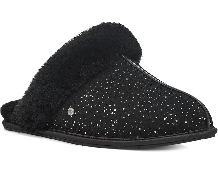 Keep your style shimmery and glamorous by donning the pretty UGG® Scuffette II Metallic Spots slippers.SKU: #9725614 Printed suede upper with sparkling detail.10mm UGGplush™ 80% upcycled wool, 20% Lyocell® lining.17mm sheepskin insole.Woven heat-embossed label with UGG® logo on the insole.Soft and plushy sheepskin collar.
